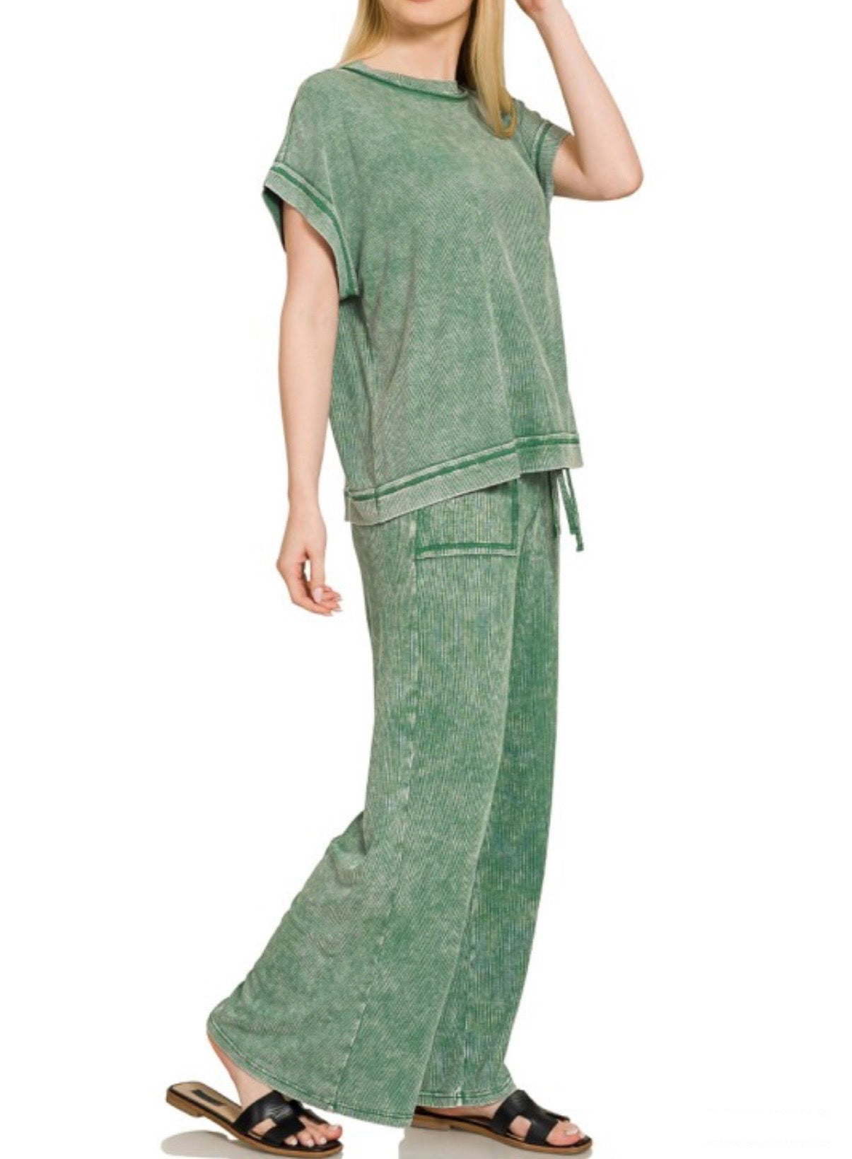 Ribbed acid wash top & pant set